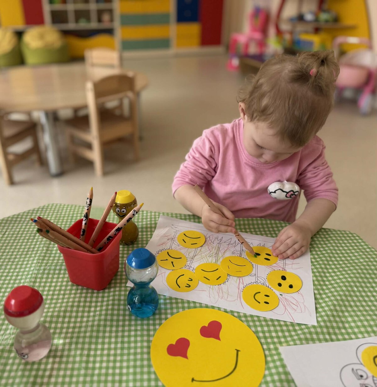 Ankstyvojo amžiaus grupių („Kiškučių“, „Kregždučių“, „Voveraičių“ ir „Pelėdžiukų“) mažyliai leidosi į spalvingą emocijų pažinimo kelionę – projektą „Emocijų karuselė“. Per žaidimą, tyrinėjimą ir kūrybines veiklas vaikai žengė pirmuosius žingsnius pažindami savo vidinį pasaulį – susipažino su pagrindinėmis emocijomis: džiaugsmu, liūdesiu, pykčiu ir baime. Veiklų metu mažieji žaidė emocijų atpažinimo žaidimus, stebėjo savo veido išraiškas veidrodyje, reiškė emocijas mimika ir judesiu, o kūrybinėse veiklose perteikė savo jausmus spalvomis ir formomis. Vaikai mokėsi ne tik atpažinti emocijas, bet ir jas įvardyti paprastais žodžiais, suprasti savo savijautą bei pastebėti kitų vaikų emocijas. Svarbiausia, kad vaikai pamažu suvokė – visos emocijos yra natūralios ir reikalingos, o kiekvienas jausmas gali būti išreikštas saugiai ir priimtinai. Kurdami saugią, palaikančią ir empatišką aplinką, padedame vaikams drąsiai reikšti save, mokytis suprasti kitus ir kurti pirmuosius socialinius ryšius. Tokios patirtys stiprina vaikų emocinį intelektą, ugdo empatiją, savireguliacijos pradmenis ir pasitikėjimą savimi. Augame ne tik dideli, bet ir jausmingi – mokomės pažinti, suprasti ir priimti save bei kitus.